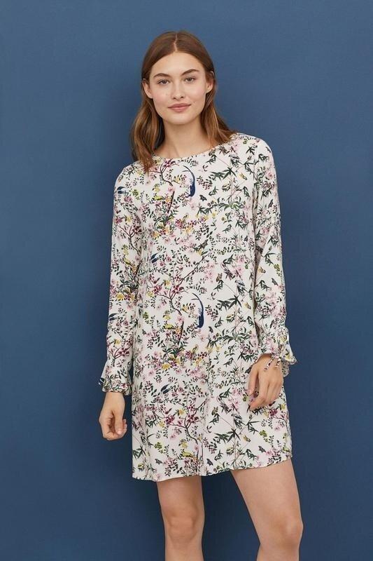 Штапельное платье с оборками на рукавах сукня туника принт цветы птицы h&m