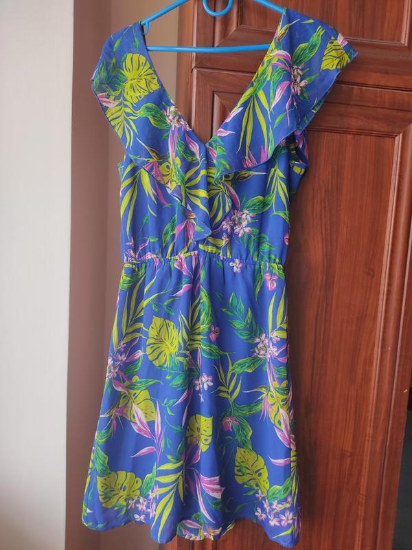 Літнє плаття. Розмір S. Ззаду зав'язується, спинка відкрита, є підкладка. Довжина 88,напівобхват по талії 30 см (гумка) Напівобхват по грудях 41. ‼️ Плаття в гарному стані,на підкладці є ледь помітні плями,виводити не пробувала