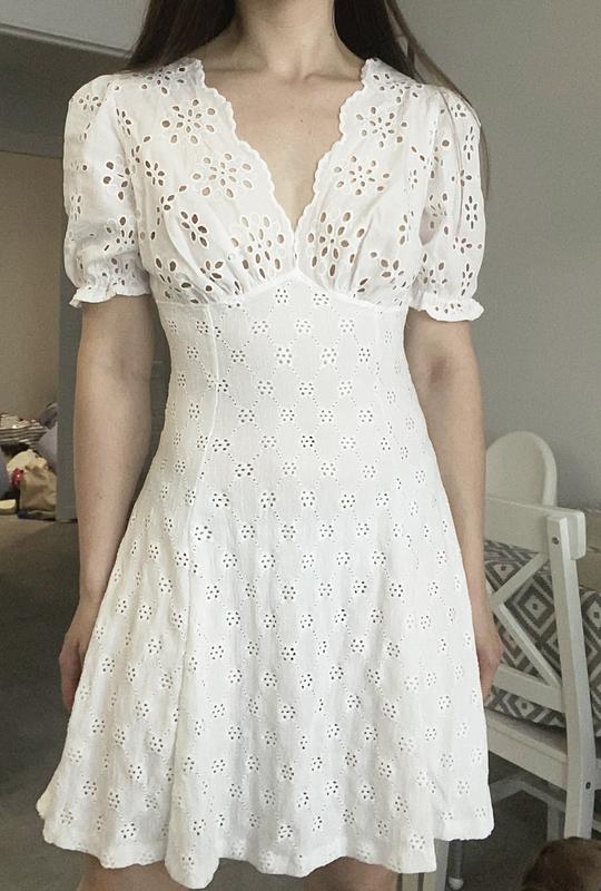 Чистое белое мини платье с перфорацией летний размер m фирма reserved