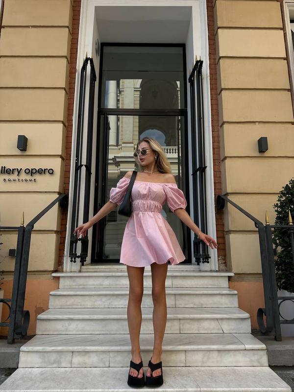 Сукня 🔥 Арт.235 Ткань: коттон поплин Размер: 42-46, one size Цвет: барби Идеальное платье мини, красивые рукава фонарики, качественная ткань и такая красивая посадка на талии ❤️ очень нежная и приятная Меr