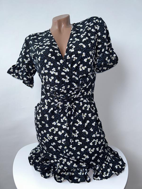 Сукня міні з широким поясом на зав‘язках з люверсами у квіти каітковий принт з рюшами во...