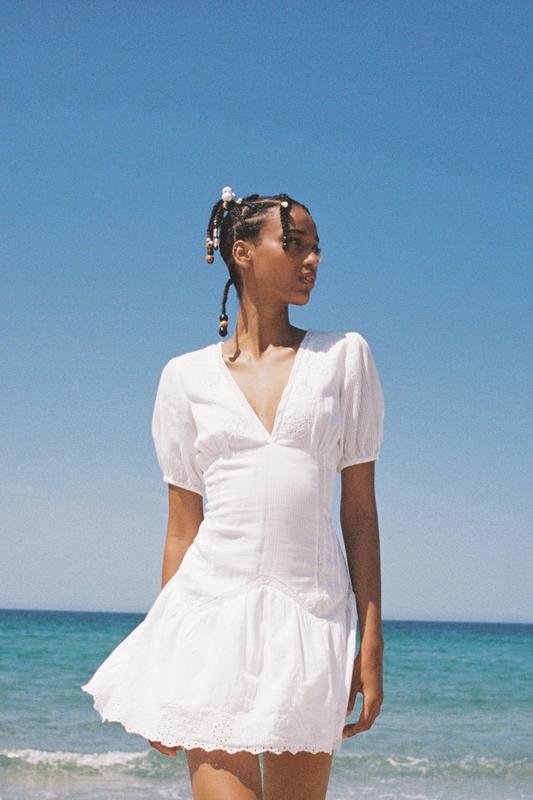 В НАЯВНОСТИ РАЗМЕР: М ЗАМЕРЫ РАЗМЕР М: П.О. ГРУДИ: 47см П.О.ТАЛІЯ: 42см П.О. БЕДРА: 44см ДОВЖИНА СУКНИ: 82см СОСТАВ ТКАННИ: 100% БАВОВНАЯ Платье с прорезной вышивкой, V-образным вырезом и короткими рукавами-баллонами. Имеет подкладку.