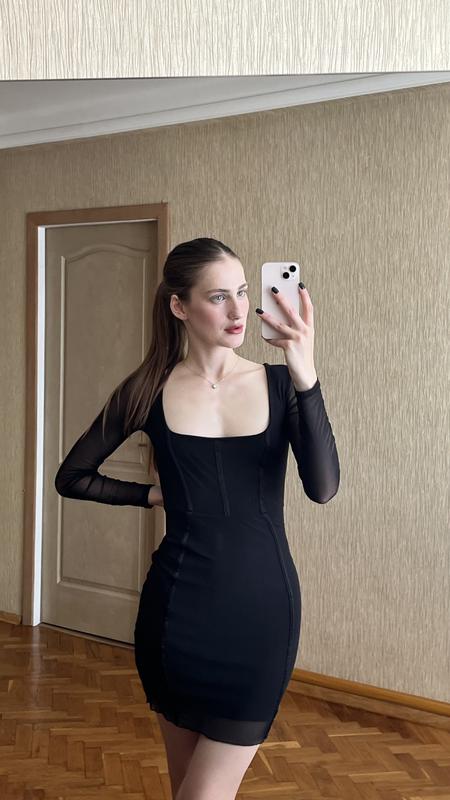 чорна базова міні сукня з сітки з підкладкою та гарним квадратним вирізом є імітація корсету абсолютно нова з біркою розмір: С/М