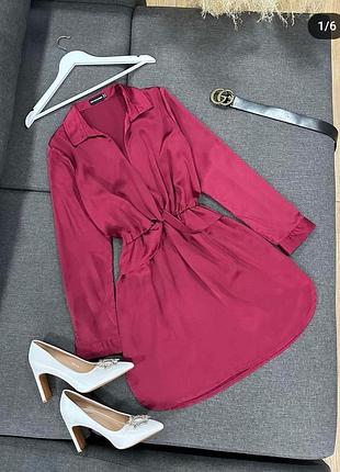 ❤️Эффектная... соблазнительная... шелк Армани... неповторимый бургунди... Только представь себя в ней/ Prettylittlething 14 р-L Пог 49/51 см Пояс резинка 36/42 см Поб свободного кроя до 55 см Рукав 63 см Длина 94 см