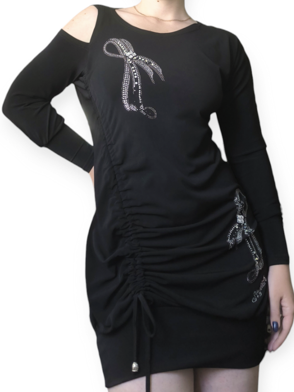 Короткое платье женское с затяжкой сбоку и открытым плечом