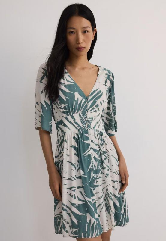 Нова з біркою. Стильна та легка сукня з віскози. Приємна до тіла тканина, яка не буде парити та чудово сяде на різні типи фігури. Ціна на бірці 1399. * V-подібний виріз * застібка на обтягнуті тканиною ґудзики спереду * широкі короткі рукави * довжина міні