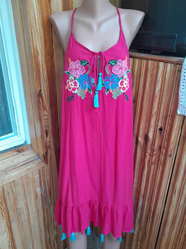 Легка віскозна сукня з вишивкою в бохо стилі Розмір 12 Стан чудовий Заміри: довжина 103, груди 48-49, талія 49, бедра 52. Вказані напівзаміри.