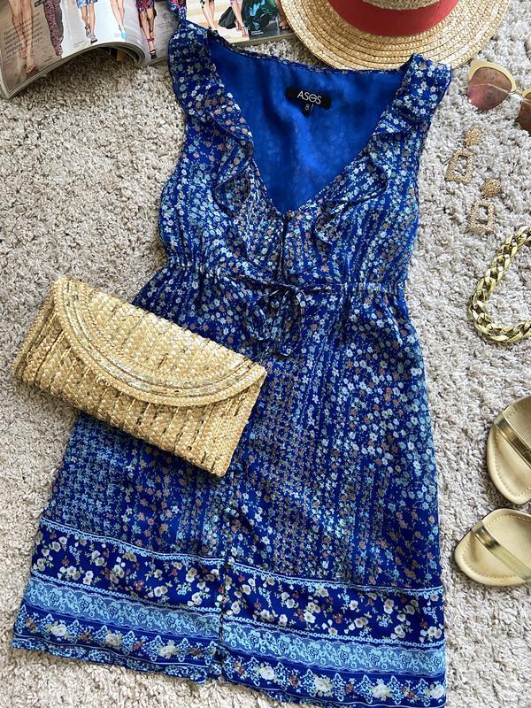 Для більш точного визначення, виміри, порівнюйте із вимірами подібної речі, а не зі своїми обсягами. Мила літня сукня. Тканина шифон, є підкладка, не просвічує, не тягнеться. Застібається спереду на ґудзики. Талія на резинці та тонкому паску. Колір волошковий в дрібну квіточку. Стан: дуже хороший. Дефекти: ні. Розмір на бирці: 8 (Виміри виробу вимірюються у напівобхваті, а не від шва до шва!) Виміри виробу: Плечі 32см. напівобхват грудей 43см., напівобхват талії 33см., напівобхват стегон 49см., довжина від плеча 83см. довжина від плеча до талії 32см. Склад тканини: 100% поліестер. Країна виробник: Китай. Бренд: ASOS. Оплата і доставка: Оплата на картку монобанк. Бронювання на оплату тільки 24г. При змінах наміру купувати обов'язково повідомляйте! Доставка: На час введення воєнного стану уточнюйте чи можлива доставка до Вашого пункту. Актуальні новини можна уточнити на сайті перевізника та за номером телефону контакт-центрів. Не забудьте ПІДПИСАТИСЯ щоб бути в курси всіх новинок та розпродажів!