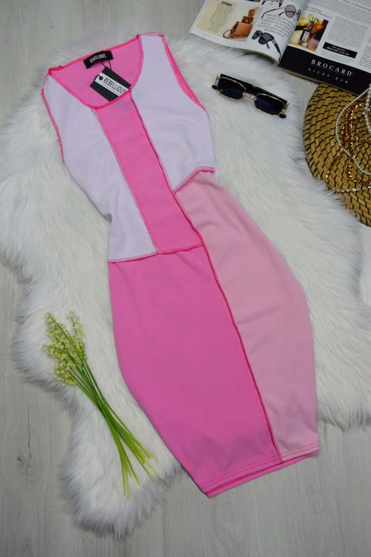 Платье розовое мини по фигуре со швами на снаружи наизнанку платье новое