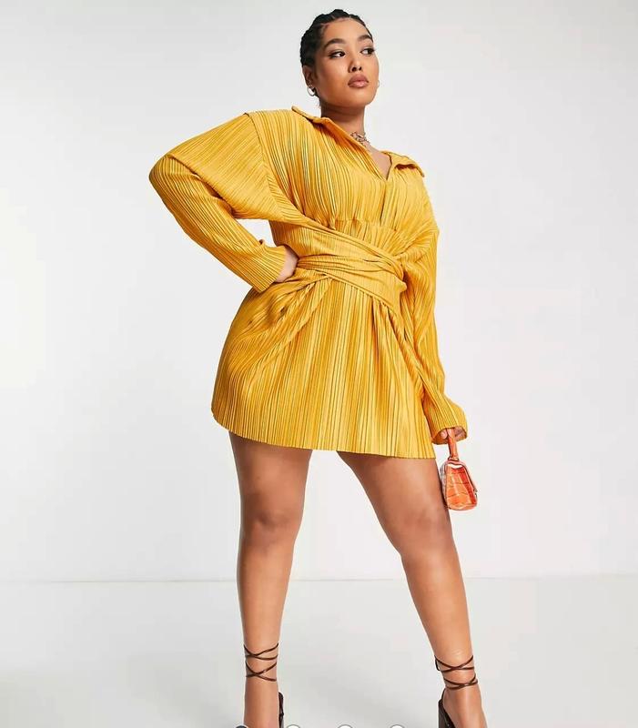 Оранжевая плиссированная мини-платье i saw it first plus с завязкой на талии