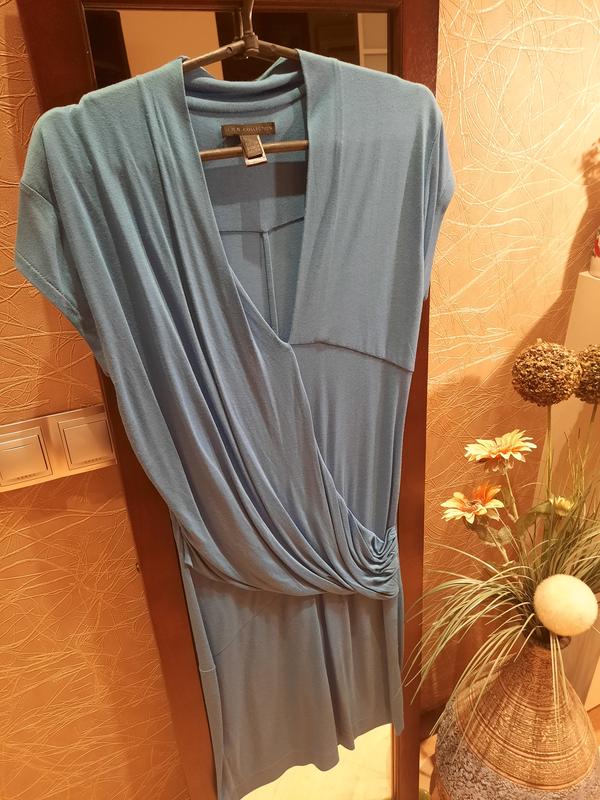 Стильное мини платье, по фигуре на бедрах, голубого цвета, бренда Mango. По факту размер S/36/44. Ткань вискоза, очень приятная к телу, хорошо тянется. Свободно сидит в области плеч и груди. Одевала один раз, состояние нового, без затяжек или катышей. Впереди декольте.
