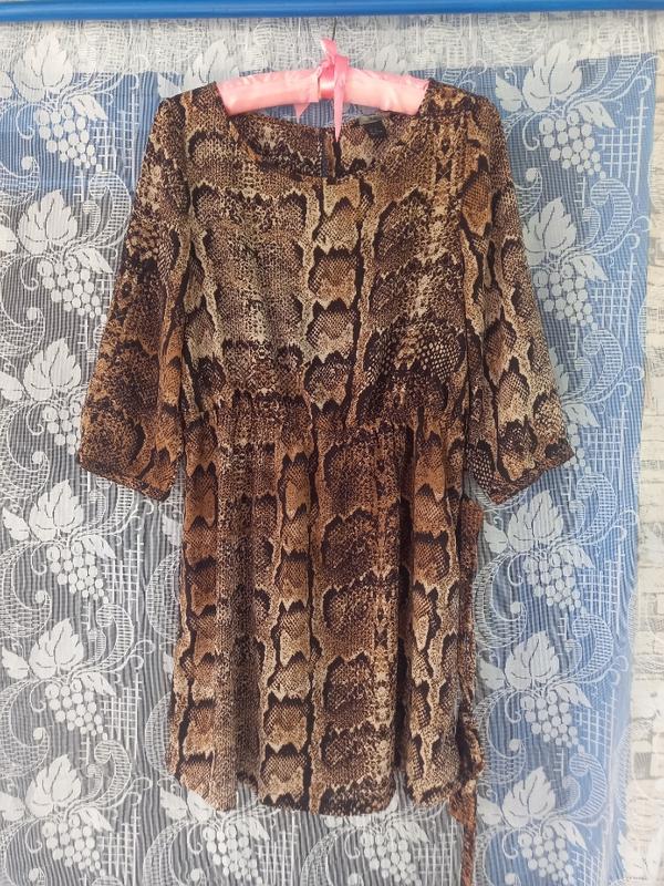 состояние идеальное, платье в змеиный принт, с пояском. полуобхват груди 46см, полу обхват талии 37см(поясок на резинке) полу обхват бедер 55см, длина 83см, длина рукава 43см