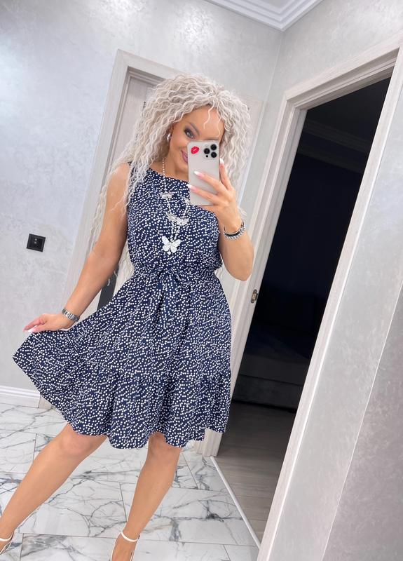 Легкое и воздушное платье новая цена 430 грн Выполнена из софта В этом платье вы будете чувствовать себя свободно и комфортно Размеры 42-44,46-48,50-52 Длина 92-94 см 2 цвета: темно синий, красный горох Замеры и параметры модели на фото код1905(азы)