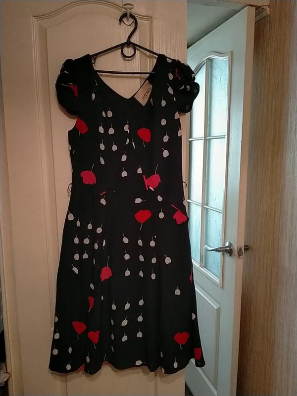 темно синее с цветочным принтом, чехол из ацетата. Длина 101 см. ПОГ 96 см. ПОТ 84 см.