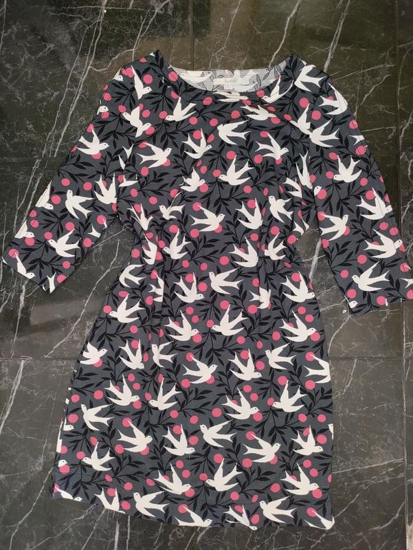 Платье с принтом "Ласточки". Нюансы на фото, есть 2 поломки спереди и один сзади. Когда платье на теле, его не заметно.