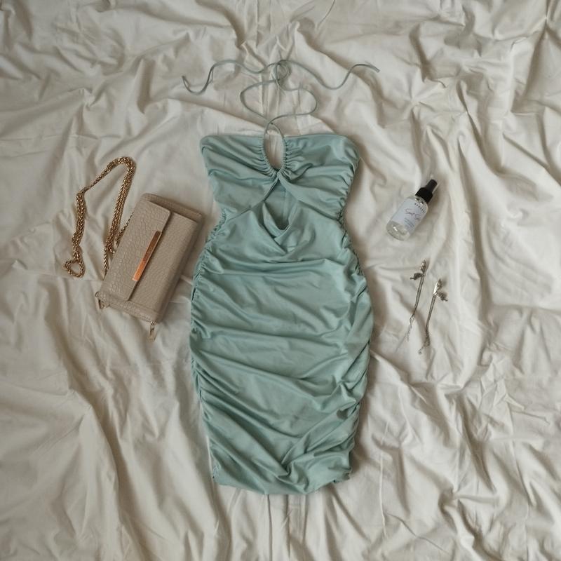Просто идеальное платье от крутого бренда Oh Polly Подойдет на любое торжество Спереди вырез, а также завязки, которые можно по-разному обвязывать (4 фото как выглядит вблизи) Красивые сборки ткани по бокам и сзади Платье хорошо подчеркивает фигуру Цвет правильный на первых двух фото Размер UK 8, подойдет на XS-S, на M не подойдет (я М))