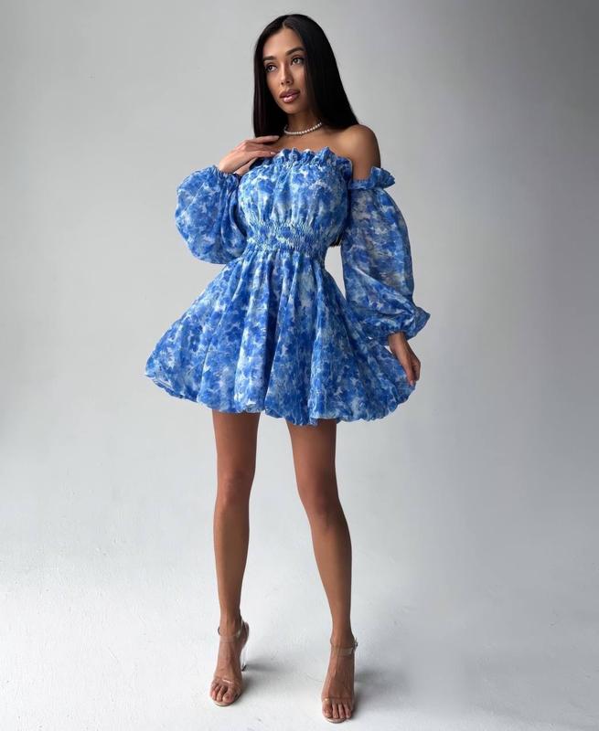 Новинка💗 (безлимит) Платье с объемной рыхлой юбкой на подкладке 🤍 Модель 4077 ▫Ткань: софт принт+ подкладка ▫Размерный ряд : 42-52 (универсал) ▫Кольори: як на фото 🏷 1300 грн Отличности от фото нет Легкое платье с рукавами воланами, утягивающей резинкой на талии, которая визуально уменьшает ее <unk> Юбка на подкладке, которая придает рыхлости изделию🤍 Очень красиво подчеркивает формы и ложится по фигуре🌸