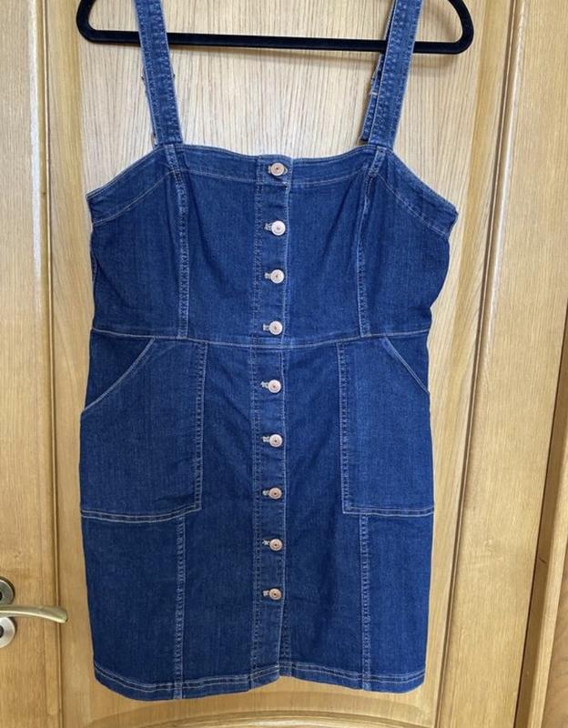 Модный, стильный, эффектный джинсовый сарафан. Очень хорошо тянется. Хлопок с эластаном. Надет на 52 р, поэтому немного мал. Подходит и у кого не выражена талия. Или так можно носить- поверх футболку, жакет и т д. Подходит так же на грудь 3 размера. Фурнитура медного цвета. Длина с лямками( регулируются) 88. Без- 68. ПОГ 49. Пот 43. Поб 50