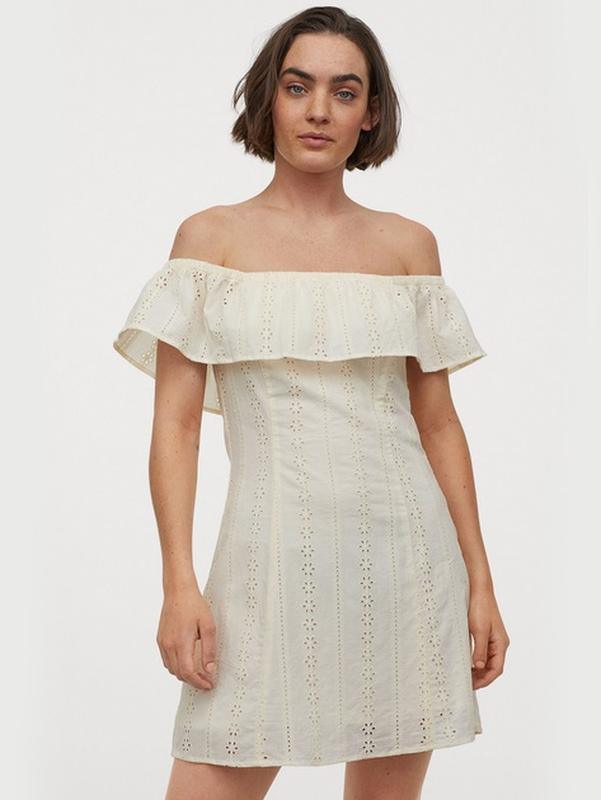 Новое платье H&M, прошва. Размер 40, скорее 38. Цвет молочный. В боку молния. В составе 100% хлопок. На тонком подкладе 100% полиэстр. Новое, сток аутлет, без бумажной бирки. Цена 499 грн ПОГ - 38 см, до 46 см ПОТ - 38 см ПОБ - 56 см Длина посередине, смотрите где начинается верх!!! - 70 см 0726226 ВЕЩЬ АБСОЛЮТНО НОВАЯ, К СЕКОНДУ ИЛИ Б/У ОТНОШЕНИЯ НЕ ИМЕЕТ