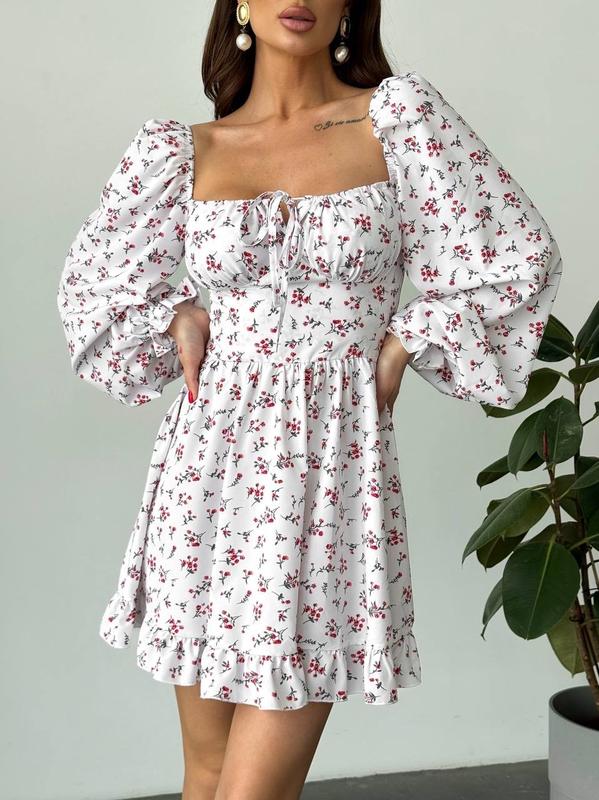 Легкое платье летнее с длинным рукавом длина короткая с цветами