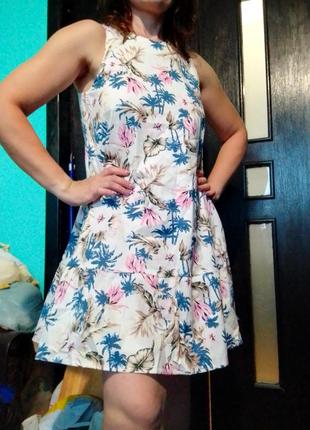 летнее платье с растительным рисунком из натурального хлопка приятное к телу. Длина 88, ПОГ 44От груди расходится клешем книзу.