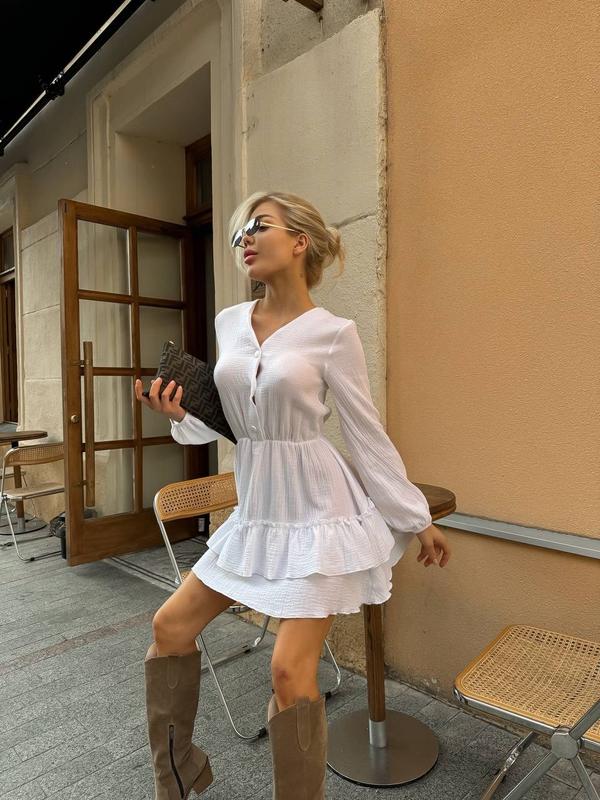 🥀Новинка🥀 ФОТО Реал⚠️ Сукня Код 066 Ткань: муслин Цвет: белый Размеры: 42-44, 46-48 💵Цена 770 грн 🔥 Wow🤩Наше бомбезное платье на весну и лето. Легкое женственное💙. Можно носить весной под косуху, или возможно, как летнее пляжное платье. Качественная и приятная ткань - муслин (не светится). Верх застегивается на кнопки, талия на резинке, бедра свободны.