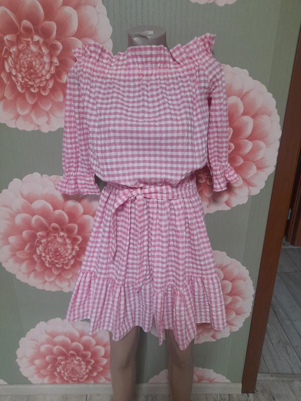 Платье женское лето. Натуральная ткань, приятная к телу. Состояние новой. На размер от хс до м. По талії тягнется . ( пасок в комплекте),на плечах опускается