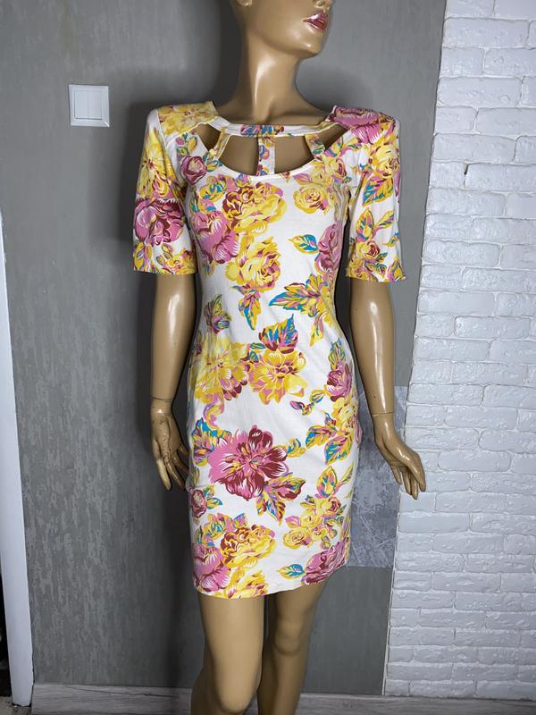 Винтажное хлопковое платье в цветочный Принт платья винтаж Hibiskus Depose, M. Длина 89см, ПОГ 44-54см, ПОБ 44-56см