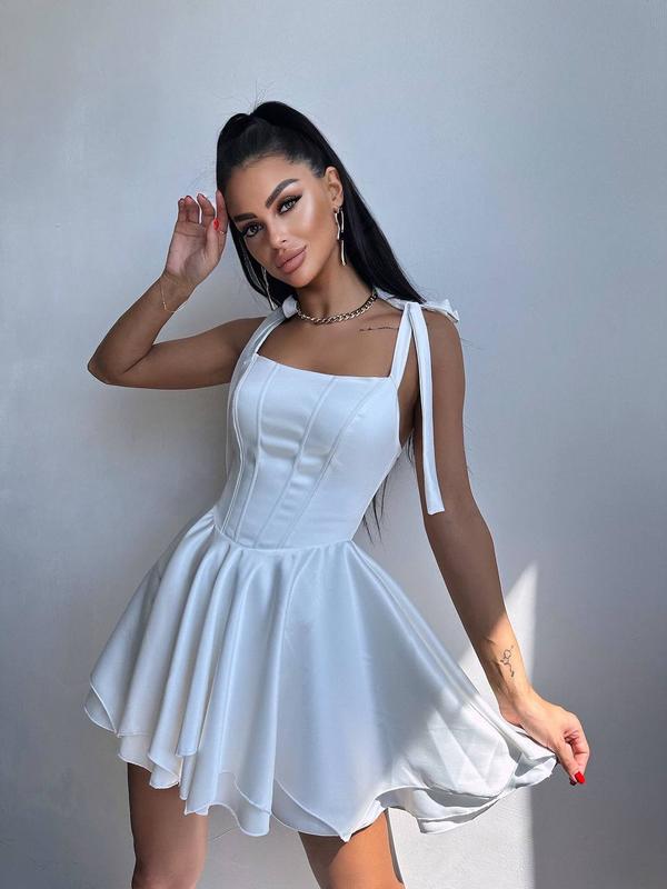 Атласное корсетное платье мини с двойной юбкой, платье мини из королевского атласа с пышно...