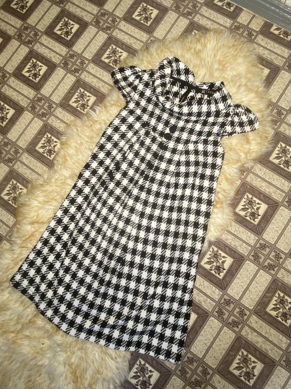 Сукня в густину лапку . С воротничком, на пуговичке сзади. Прямого покроя.