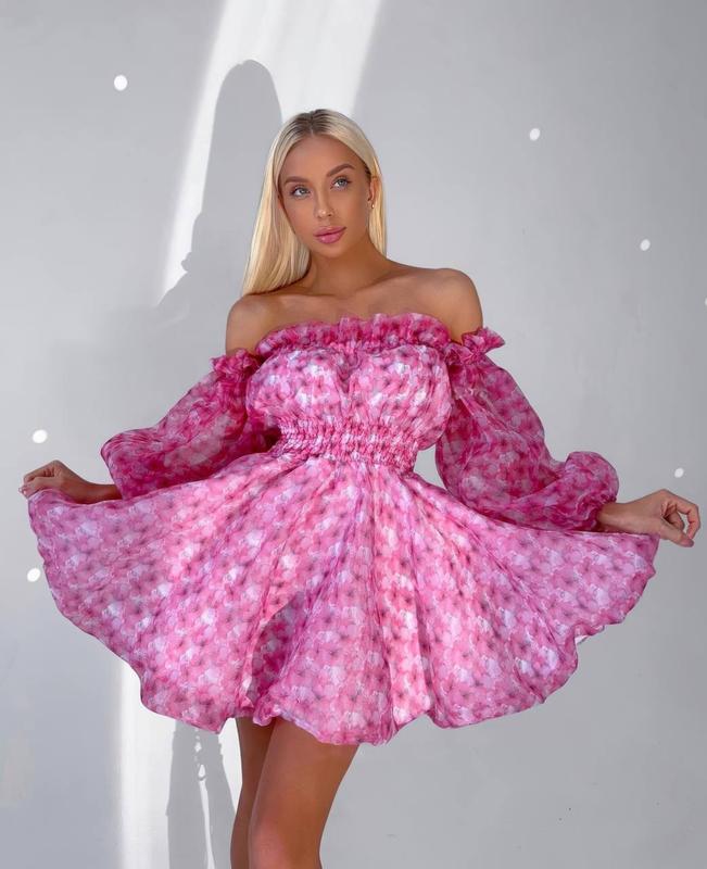Новинка💗 Платье с объемной рыхлой юбкой на подкладке 🤍 Модель 4077 ▫Ткань: софт принт+ подкладка ▫Размерный ряд : 42-52 (универсал) ▫Кольори: як на фото 🏷 1300 грн Отличности от фото нет Легкое платье с рукавами воланами, утягивающей резинкой на талии, которая визуально уменьшает ее <unk> Юбка на подкладке, которая придает рыхлости изделию🤍 Очень красиво подчеркивает формы и ложится по фигуре🌸
