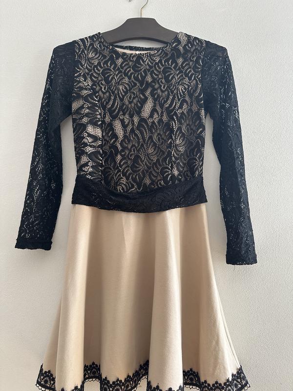 Стильне,нарядне плаття. Без дефектів. Всі Бірки зрізані. Тканина гіпер та трикотаж. Без підкладки,непросвічується. Довжина від плеча 85 Плечі34 Рукав 60 Пог 36-44 Пот 34-40 Бедра-вільні