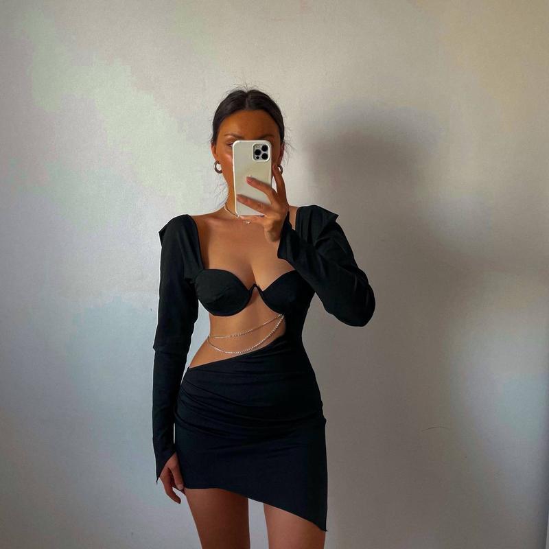 Модель 01323 Что может быть соблазнительнее силуэтных платьев? Такая точно будет только у вас! Новое платье - всегда повод для радости Повышаем уровень дофамина 🖤 Для любительниц запоминающихся образов та найінстаграмніших фото🥰 Украшение с камушками, емкость Размер S 42-44 (ОГ 70-90, ОБ 76-91) М 44-46 (85-96, ОБ 85-105) Материал : стрейчевой трикотаж