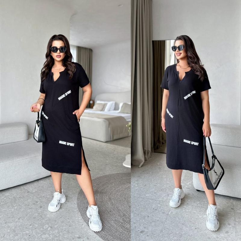 ⬆️Новинка Сукня- спорт- шик Это платье Вам гарантирует: удобство, легкость, прохладу, привлекательность- то что нужно в летние жаркие дни. Модель 1084❤️373 Ткань - трикотаж хлопок, производство Туречинное. Супер качество Размеры 48-52, 54-58 Цвета: черный, красный, мокко Замеры на модель 1084 Длина платья 108 см Ог 120/130 Об 120/130 Платье носится свободно