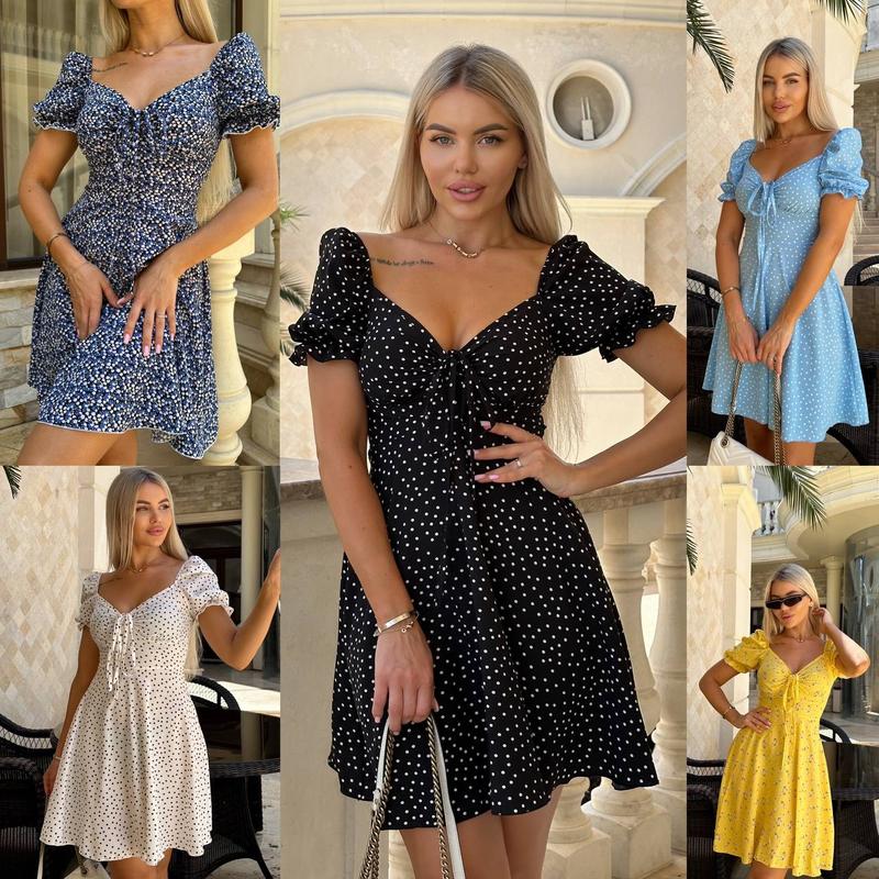 Размеры: S, M, L, XL Тканина: софт Цвета: желтый, темно-синий, белый, горох, голубой горох и черный горох Платье застегивается на потайную молнию, рукава на резинках. Отличное качество.