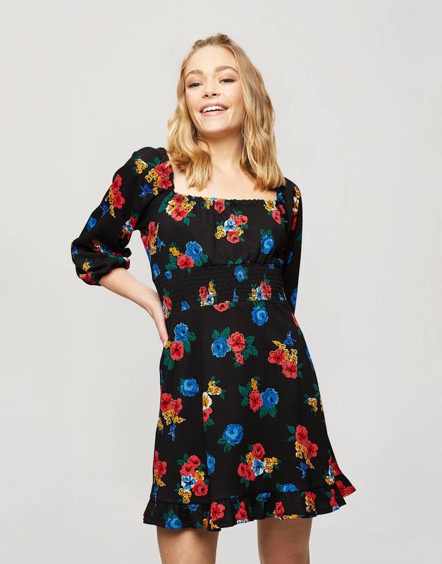 Чорна коротка квіткова сукня з довгим рукавом miss selfridge 🛍️1+1=3🛍️