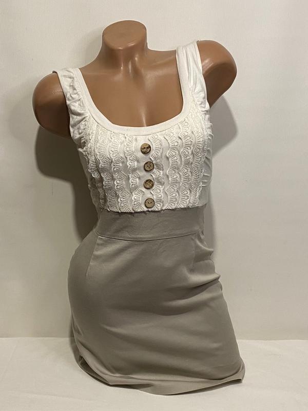 Мини платье Размер - написано М Ширина (по груди) - 40-49см Ширина (по талии ) -35-39 см Ширина (по бедрам) - 45-47см Длина -79 см юбка-материя как тонкий джинс с эластаном, верх - материя типа вискоза, плюс кружево, сзади на замочке