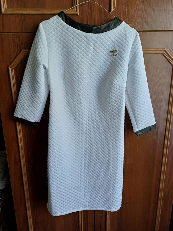 Платье трикотаж. Как кукуруза. Размер 42-44. Белое. Окантовка с эко-кожи. Не носилось.