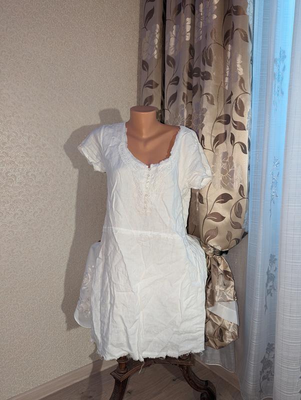 Платье лен размер xl пог 54 пот 57 длина 90см низ с бахромой