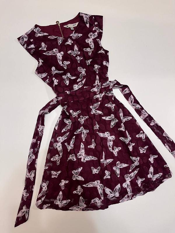 Изысканное коктельное платье-сарафан с вшитым ремнем на талии, которое завязывается на спинке-Yumi. Платье на молнии. Имеет нежное прозрачное плече. На подкладке, сверху эластичная сеточка с принтом-бабочки, которые добавляют легкости, настроения и нежности. Цвет: вишневый. Размер: UK 8 EUR 36 D 34 XS-S По замерам убедитесь в личные сообщения. Платье Новое Бирки не сохранились. Отправлю любой удобной почтой для Вас или личная встреча и примерка. Торг всегда приветливый. Приятных покупок.
