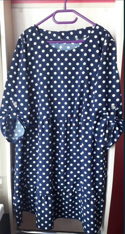 Чудова сукня темно-синього кольору з принтом в білий горох 44-46 розмір, вільного крою. Одягала під час вагітності. Стан - ідеал🤩
