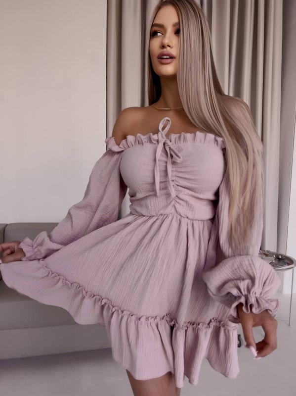В наличии нежное романтичное платье с длинным руковым фонариком Коляры: пудра, нежно-желтый, белый, Цена 1100грн Ткань: качественный натуральный "Муслин" Состав: 100% хлопок. Размеры: см, лхл