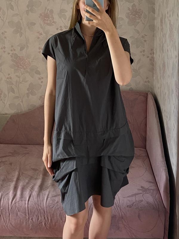 Стильна сукня, цікавого крою. Сірого кольору. Є кармани. Дуже приємна і легка тканина, ідеально підійде для літа, не жарка.