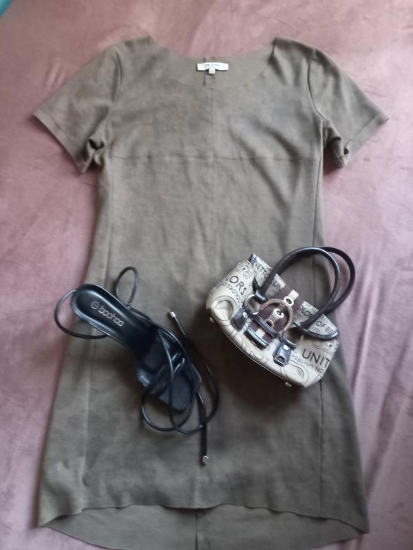 Шикарна сукня з еко замши. Дуже гарно та дорого виглядае, імітація потертой замши. Тканина цвета хакі, мьяка та приємна на дотик. ✅ ПОГ -44 см ✅ ПОТ - 42 см ✅ ПОБ - 47 см ✅ Довжина спереду - 84 см ✅ Довжина сзади - 89 см ✅ Розмір вказаний М, але воно тягнеться до розміру XL. Можливо одягати під легенси як довгу кофтинку.