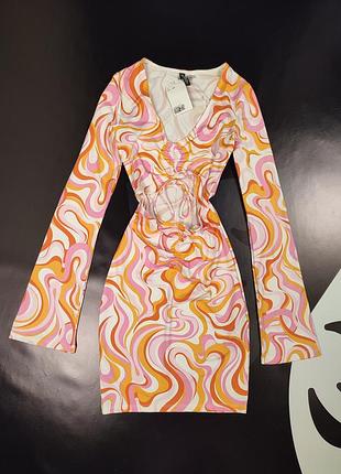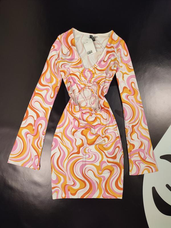 Платье новое с биркой, но есть маленькое пятнышко на рукаве, дефект отмечен стрелочкой на последнем фото, Плечи 32см, рукав 63.5см, пог 34см, талия 26см, поб 34.5см, платье еластичное, хорошо тянеться, состав 90% полиестер, 10% еластан Торг при покупке от трёх вещей, Фото на теле нет, За доп информацией пишите в сообщения
