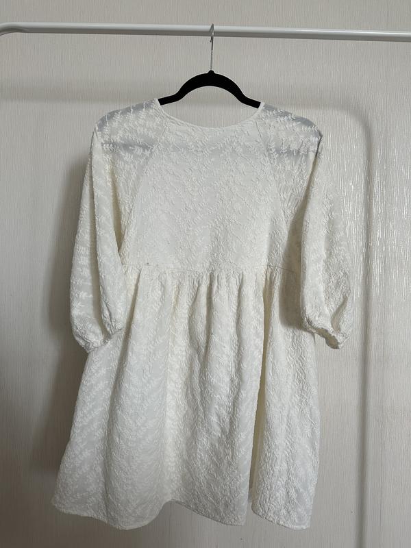 Платье молочного цвета с вышивкой длины мини Не просвечивает, ведь имеет подкладку Размер: XS Состав: 100% хлопок Состояние: идеальный Длина: 77 см (мой рост на последнем фото 161 см)