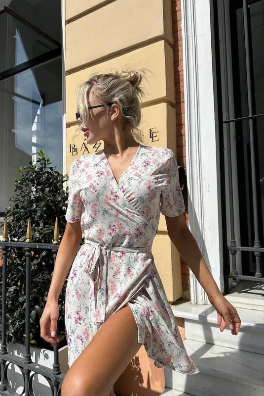 сукня на запах з квітковим принтом є кишені тканина штапель