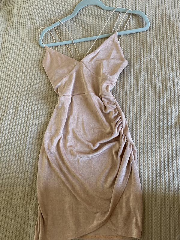 короткое розовое платье, без дефектов, имеет приятный нежно розовый колиp с перламутром, cтрайтчкое, красиво сидит на любимой фигуре размер 34-36