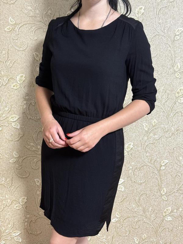 Красивое платье черного цвета, пояс на резинке, рукав четвертый