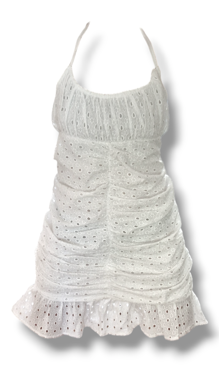 Новое белое платье С оборками и широким подолом На завязках с вышивкой Немного шов разошелся Размер: М, L